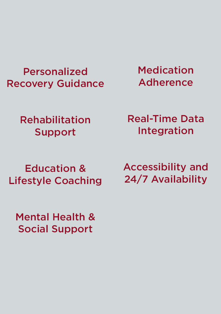 - Preventing Secondary Events – Monitors symptoms, educates on warning signs, and guides users toward prevention strategies.