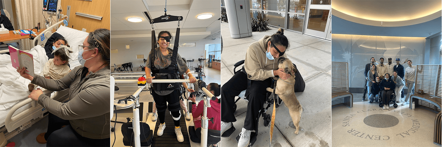 AMEX handled everything including setting up an Emirates Airline Medical Flight. It was a 30-hour flight routed through Dubai because no airline that flies directly from Tokyo to SFO offered Medical Evacuation flights. I was accompanied by two flight nurses and JP right by my side. They transferred me on a gurney, which I was in for the whole 30 hours. I didn’t end up having to sit up once. The doctors, ER nurses, and the entire team from TWUH hugged me before I left after 30 days with them. They were amazed with the progress I had made including restoring the ability to move my left hand and lift my left arm over my head. I still had double vision, vertigo, and a nasogastric tube as I couldn’t swallow safely. We arrived at SFO only to discover they didn’t have a gurney, a process of transferring me, and weren’t prepared to receive a medical evacuation. Fortunately, of the over a dozen people that were trying to figure out how to get me out of the airplane, a Fire Marshall helped them safely transfer me using a food and beverage cart tied together with a gait belt — JP was so worried that I would fall, and rightly so. Luckily the Fire Marshall, paramedics, and JP were able to navigate the narrow aisle safely and got me loaded onto an ambulance that was already waiting. We arrived at Santa Clara Valley Medical Center (SCVMC), in San Jose, CA. The team at SCVMC is awesome, the facility is amazing, and they helped me progress. After five weeks of Physical, Occupational, and Speech therapies, I was ready to go home. Their inpatient facility and the caring but aggressive rehabilitation I received improved my healing.