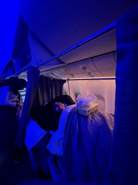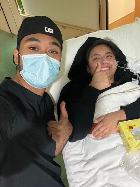 I was in the ICU at TWUH for 11 days with no visitation allowed. JP was able to convince the neurologist to arrange a one-time visit with me the first day I arrived but this was the last time I saw him until finally being transferred to the general ward. This visit is still emotional for me to talk about it, as I remember how scared he was when he came into the ICU room. A few days later, my parents flew to Japan with the help of my younger brother, who works for United Airlines. Despite them coming halfway across the world, they were never given permission to see me in person. I could only talk with them on the phone and via Facetime. Family friends came from the Philippines to help us with critical translation with hospital staff. I felt so much love and comfort that everyone was focused on helping and being with me. My doctor was incredible and was one of the only people who spoke some English, so JP could get updates and text or call with critical questions. I was first moved from the ICU to an isolation room as I started to get more stable. Finally, on day 12, I was moved to the general ward where I was granted 20 minutes of visitation per day. JP and my family were finally able to see me (2 visitors per day). They helped me exercise my hands and legs, gave me massages, and set up small stationery exercises. The conversations switched to getting me home and how that process would work. The hospital didn’t start me on aggressive therapy as we typically would in the United States (US), but instead, were focused on me sitting upright in a wheelchair for up to 2 hours at a time as this was required for takeoff and landing. The hospital gave JP a number to the US Embassy for medical transfer information which unfortunately was unhelpful. I am thankful for American Express (AMEX), who assisted us and gathered all the information needed for a safe transfer back to the US.